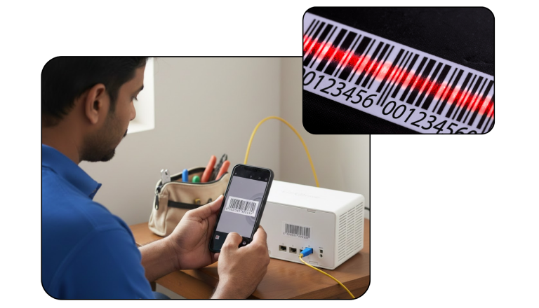 Scan devices and assets to update inventory, reconcile stock, and validate installations on the spot.