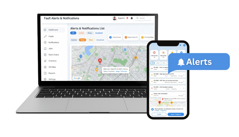 Access a lightweight field dashboard showing active tasks, nearby faults, and inventory โ with secure, role-based controls.